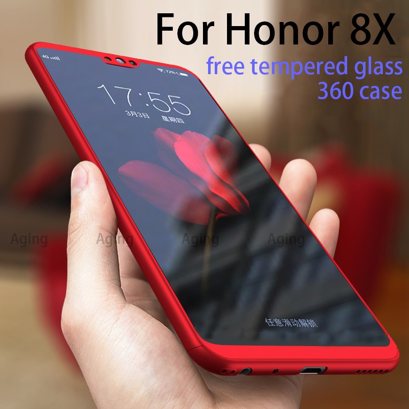 For Huawei Honor 8x Case 360 Full Protection Hard Casing Free Tempered Glass Shopee Malaysia