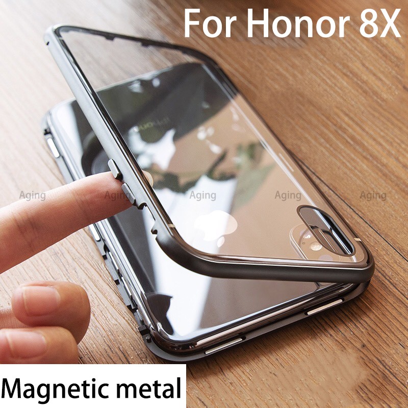 Magnetic Metal Bumper Huawei Honor 8x Case Clear Tempered Glass Back Cover Shopee Malaysia